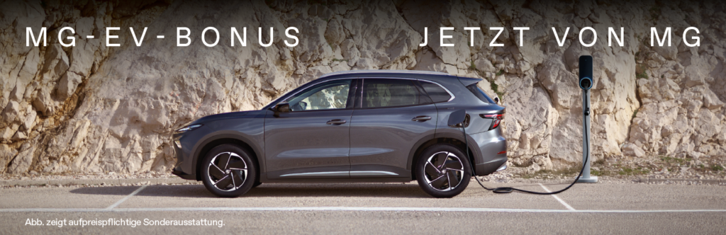 Die staatliche E-Auto-Förderung ist zurück. Und MG legt noch einen drauf. Mit dem MG-EV-Bonus erhältst Du im Zeitraum vom 1. Februar bis zum 31. März 2026 auf ausgewählte Modelle einen Preisvorteil – unabhängig davon, ob Du die staatliche Förderung erhältst oder nicht. Erfüllst Du zusätzlich die Voraussetzungen für den staatlichen EV-Bonus, sicherst Du Dir also sogar den doppelten Vorteil.